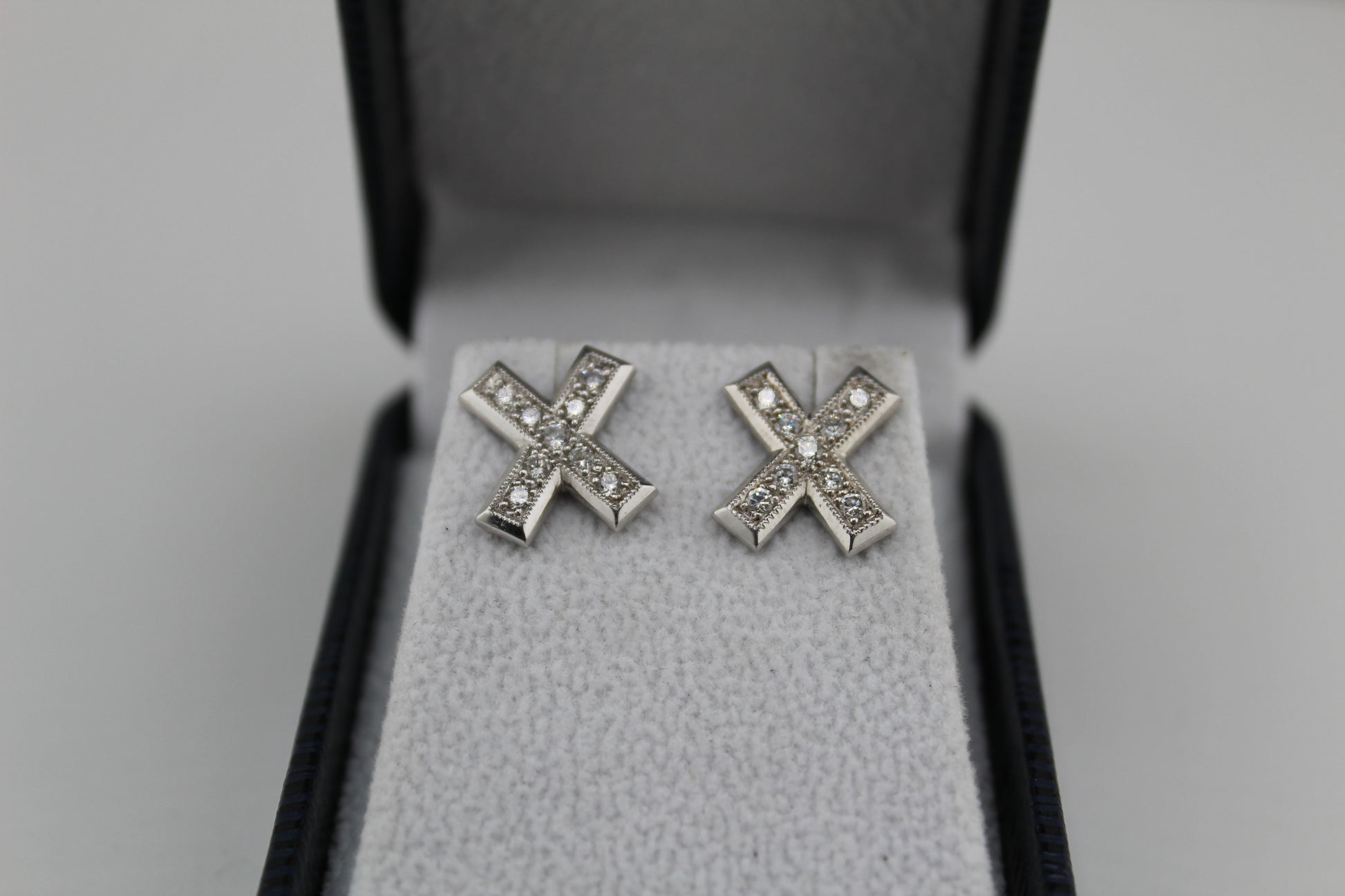 Diamond “X” Motif Earrings – White Gold/Platinum